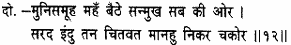 As he sat in the midst of the assembly of sages with his face turned towards all (and their eyes all fastened upon his moon-like face), they all looked like a bevy of partridges gazing on the autumn moon.