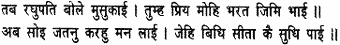 Then with a smile, Raghunatha spoke to Sugriva, ‘You are, brother, as dear to me as Bharata! Now then, with all your heart endeavour to get tidings of Sita.’