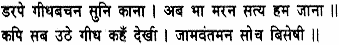 The monkeys trembled with fear when they heard the vulture’s words, ‘Our doom is now sealed, we are sure,’ they said to themselves. All the monkeys rose when they saw the vulture; Jambavan, too, was given over wholly to disquieting thoughts.