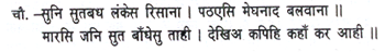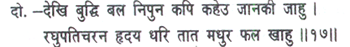 Seeing the monkey so perfect in strength and wit, Janaki said, ‘Go then, my son, and eat the luscious fruit with your thoughts fixed on Raghunatha’s feet.’