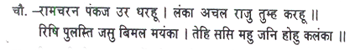 Install the image of Rama’s lotus feet in your heart and enjoy the uninterrupted sovereignty of Lanka. The glory of the seer Pulastya (your grandfather) shines like the stainless moon; be not a spot upon that moon.