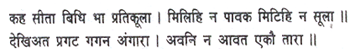 'Heaven itself has turned hostile to me!’ cried Sita. There is no fire to be had an no end to my torture! Sparks of fire are visibly seen in the heavens, but not one single star drops to the earth!