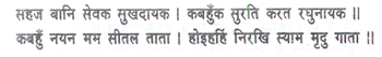 Now, mother, compose yourself and hear Raghunatha’s message.’ Even as he uttered these words, the monkey’s voice failed him and his eyes filled with tears.