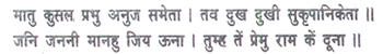 'Mother, the Lord and his brother are both well, except that the All-merciful sorrows with your sorrow. Yield not to remorse, mother; Rama loves you twice as much as love him.