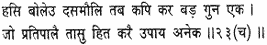 The monkey (Angad) set the enemy’s heart ablaze with the shafts of speech shot forth from the bow of sarcasm, and it was, so to speak, only with a pair of pincers that the valiant Ravana drew them out.