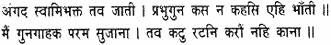 All of your race, Angad, are devoted to their lord; how would you, then, fail to extol the accomplishments of your master like this? I am a respecter of merit and too magnanimous to pay any attention to your offensive chatter.’