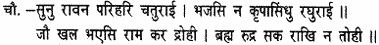 Listen, Ravana, and have done with all deceit; why do you not worship Raghunatha, the All-merciful? Oh wretch, if you persist in your hostility to Rama, neither Brahma or Shiva can protect you.