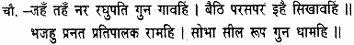 Everywhere men sang the praises of Raghunatha and sitting down together thus exhorted one another: ‘Worship Rama, protector of the suppliant, the home of all elegance, amiability, beauty and virtue;