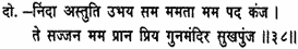 They who regard praise and blame as both alike and who claim my lotus feet as their only possession – all such abodes of virtue and living masses of bliss and all such saintly souls are dear to me as life itself.