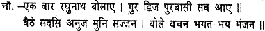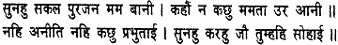 One day, summoned by Raghunatha, the guru (Vasishtha) and the Brahmans and all the other citizens assembled (in the royal court). When the brothers, the sages and the nobles had taken their seats in the assembly, the Lord Rama who put an end to his votaries’ fears addressed them thus: