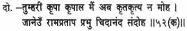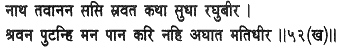 Your lips, O Lord of resolute mind, let flow the story of Raghubira as the moon lets flow nectar, and my soul knows no satiety as I drink it in through the pitchers of my ears.