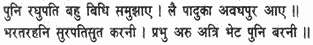 Then he related how Raghunatha did all he could to console him and how he took the Lord’s sandals and returned to the city of Ayodhya; Bharata’s mode of life at Nandigrama, the (mischievous) conduct of Indra’s son, Jayanta, and the Lord Rama’s meeting with Atri.