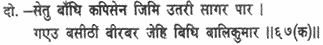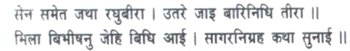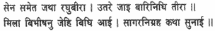 Then he described how Raghubira went and encamped with his army on the sea-shore, and how Vibhishana came and met him and how the ocean was bridged.