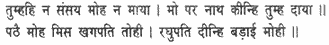 You had in reality no doubts, infatuation or delusion; it was only an excuse, my lord, for doing me a kindness. By sending you, O king of birds, as a victim of infatuation Raghunatha has conferred an honour upon me.