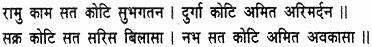 Rama is beautiful of body as a myriad Loves; inexorable in crushing his foes as countless myriads of Durgas; luxurious as a myriad Indras; immeasurable in expanse as a myriad firmaments.