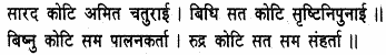 He is as illimitably eloquent as countless myriads of Sarasvatis and possesses the creative skill of a myriad Brahmas; he is as good a preserver as a myriad Vishnus and as thorough a destroyer as a myriad Rudras.