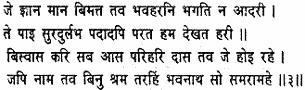 ‘Intoxicated with the pride of wisdom, they who respect not devotion to you, which takes away the fear of rebirth, may reach that goal, O Hari, which even gods may fail to reach; yet we see them fall from that estate; but they who confidently abandon all other hope and with unqualified faith choose to remain your servants, ever repeating your name, O Lord, in prayer, cross the ocean of birth and death without any effort; this is the Lord on whom we fix our thoughts!